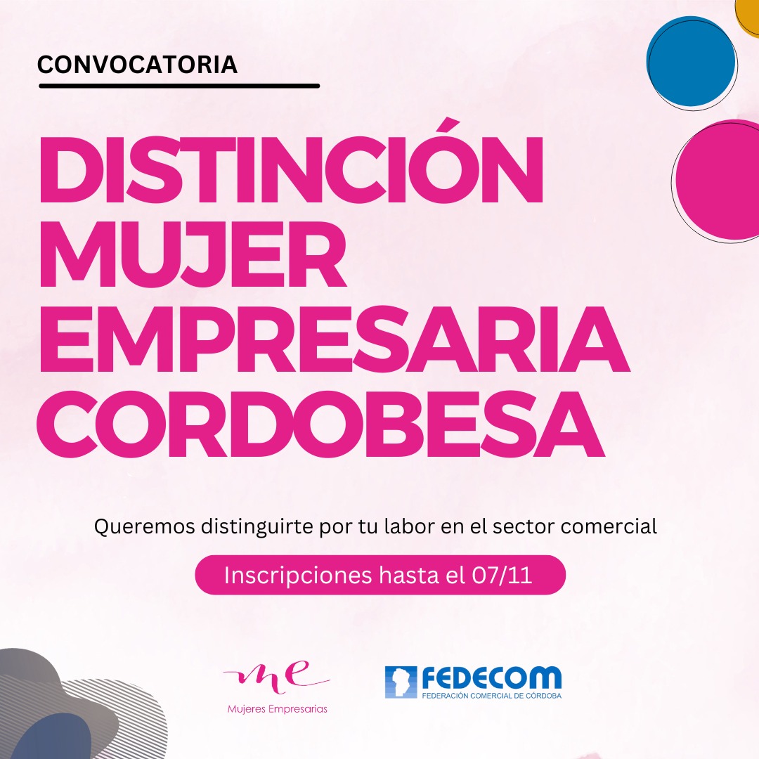 El Sector de Mujeres Empresarias de la Federación Comercial de Córdoba (MeFedecom) invita a las entidades asociadas a postular a sus candidatas para participar en la Distinción Mujer Empresaria Cordobesa, cuya convocatoria permanecerá abierta del 23 de octubre al 7 de noviembre de 2025.